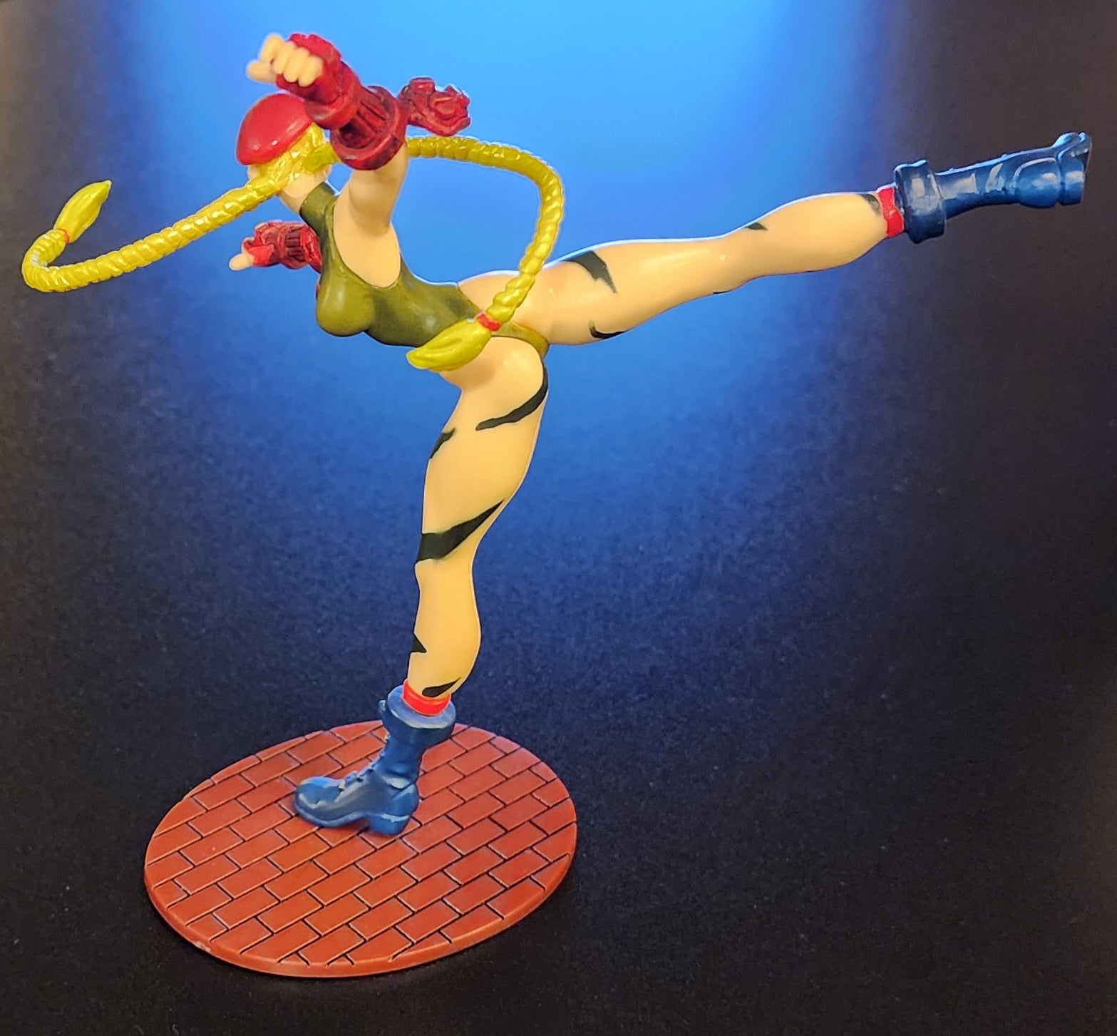 This dynamic 5" Capcom Figure Collection Cammy figure by Yamato has the Street Fighter heroine thowing an impressive side kick and celebrates the 15th anniversary of the Street Fighter series. This is the original 1P Color version.