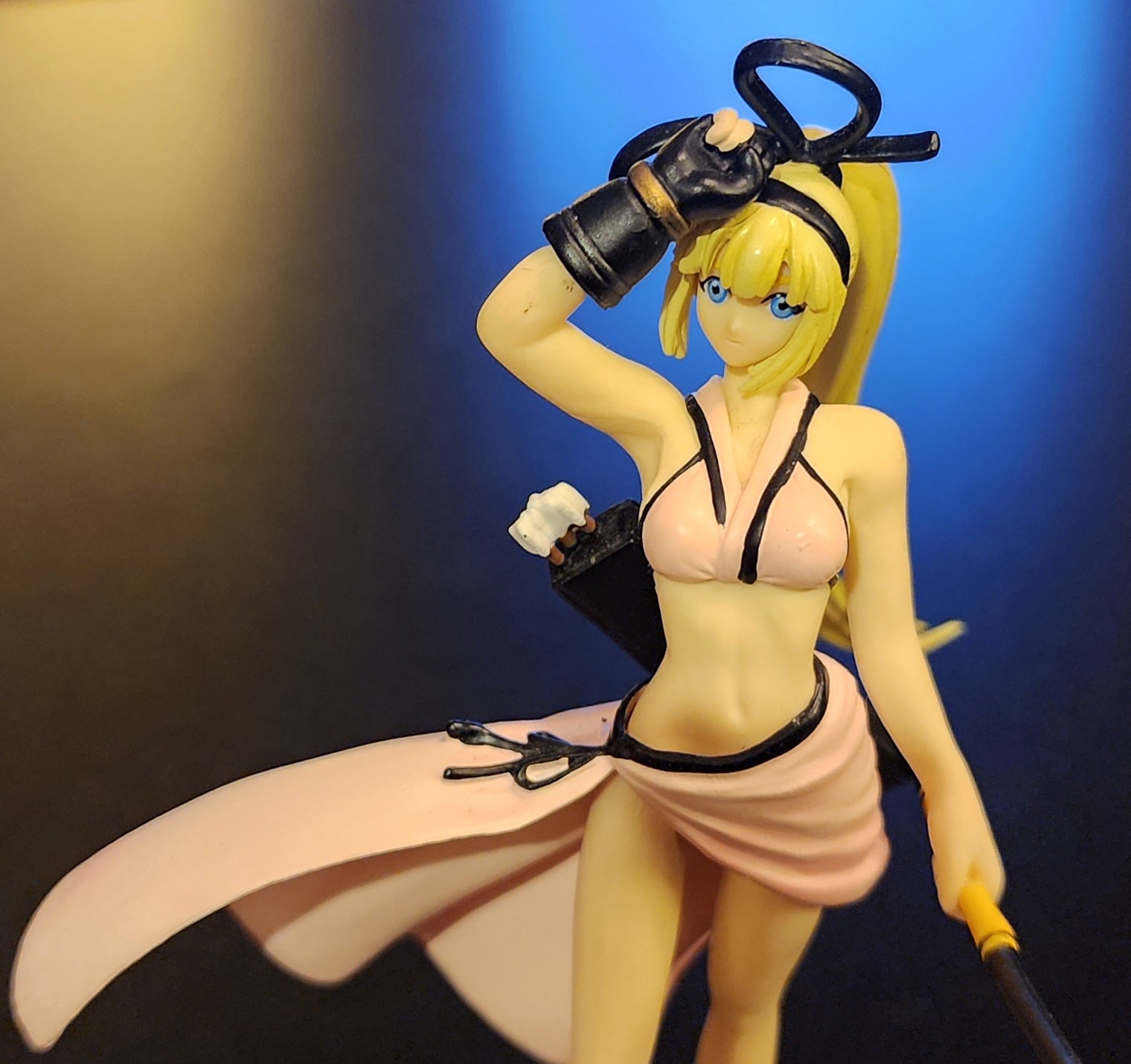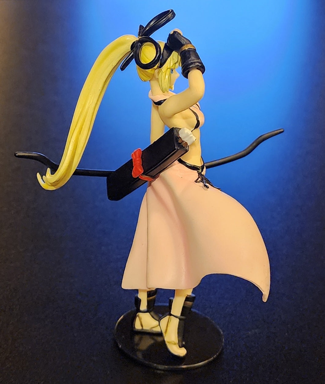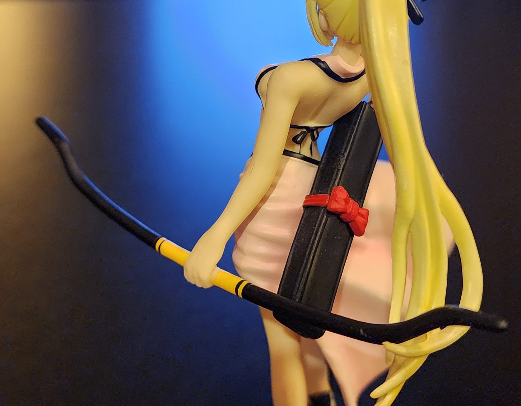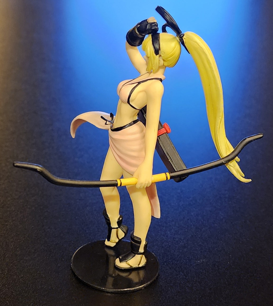 Mina holds her bow and her arrow holster attaches to her back. Her bow separates into two parts and her skirt can be removed. She can articulate her head and right wrist to change her pose slightly. This is the original 2P Color (blonde hair / pink outfit) version.