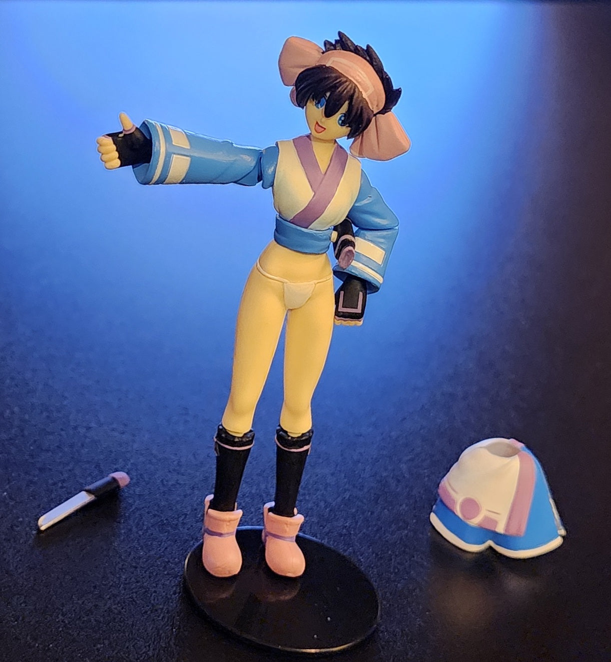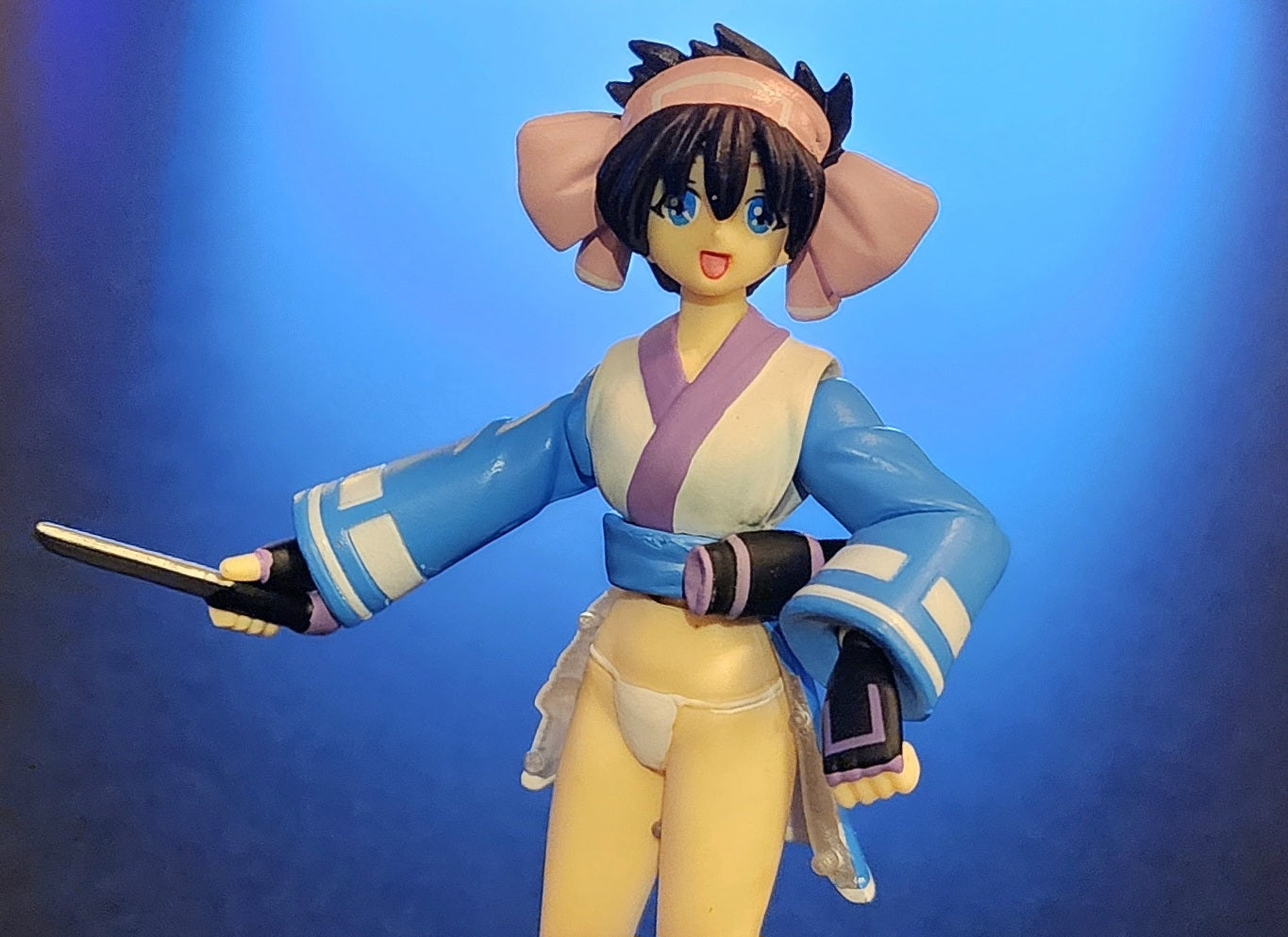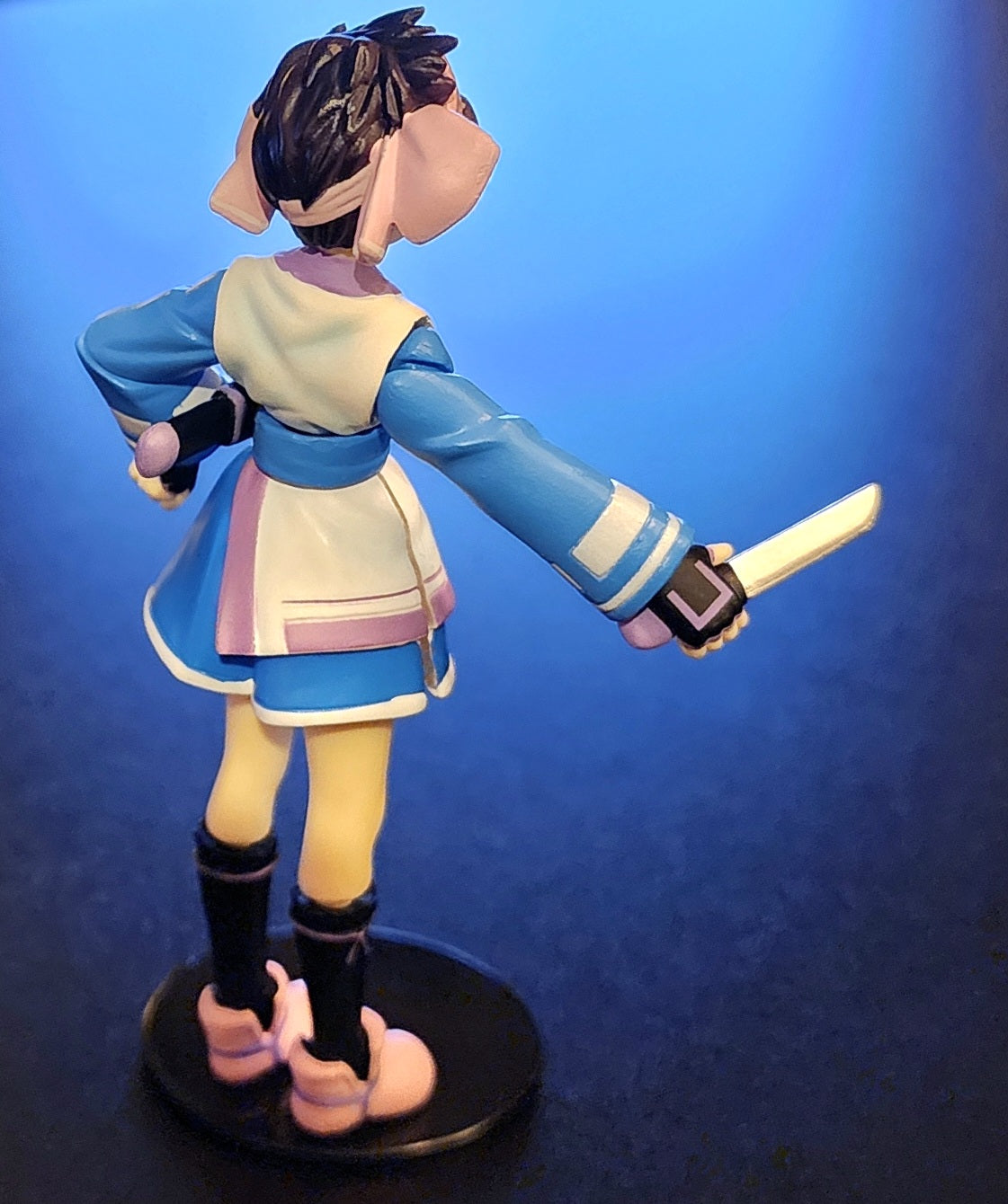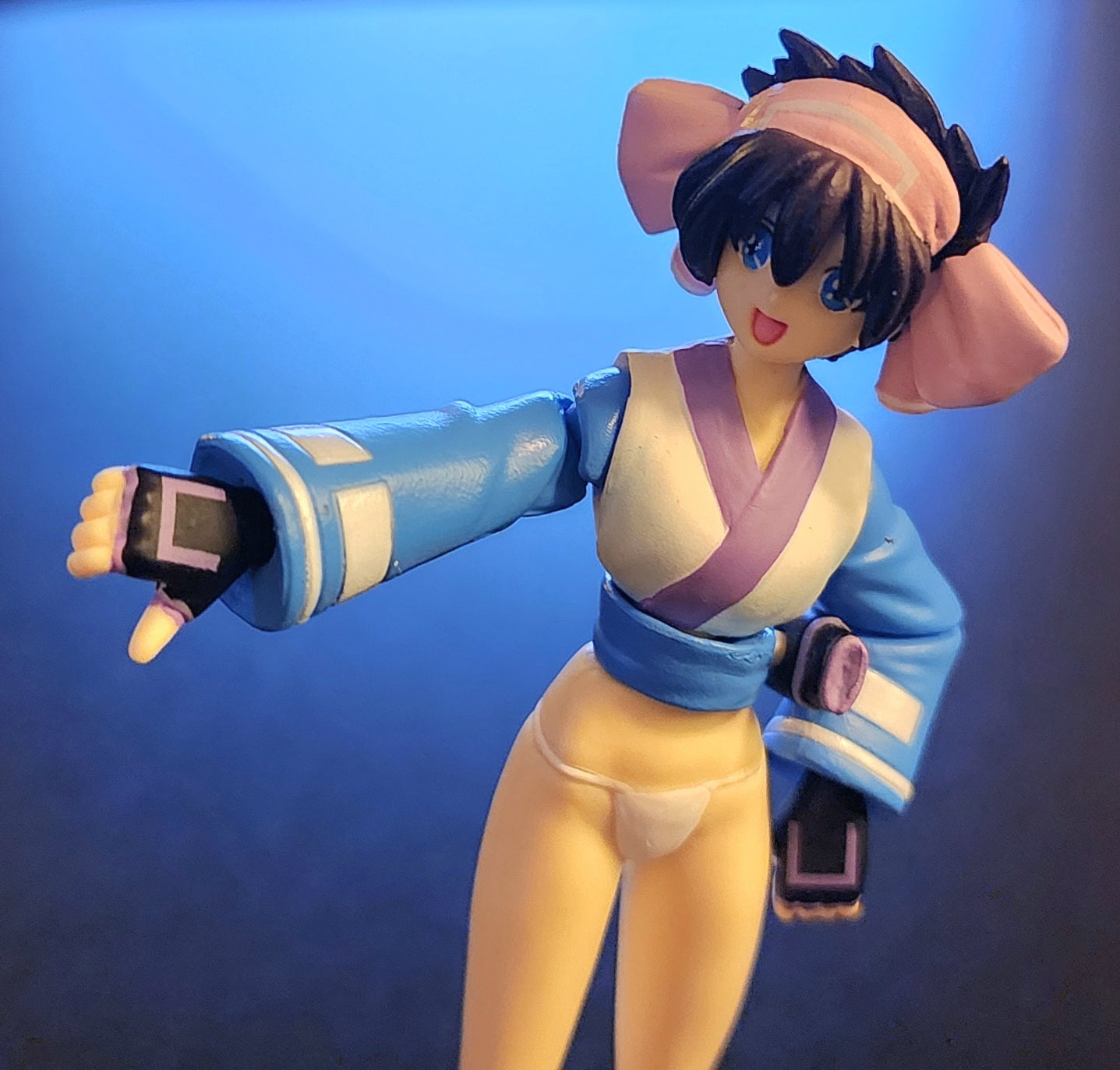 A Japanese gashapon figure of Rimururu from SNK's Samurai Shodown / Samurai Spirits. In this version of the figure, she can hold her short sword / knife weapon! 🗡 The sword is a loose item and her sword sheath connects to her back.