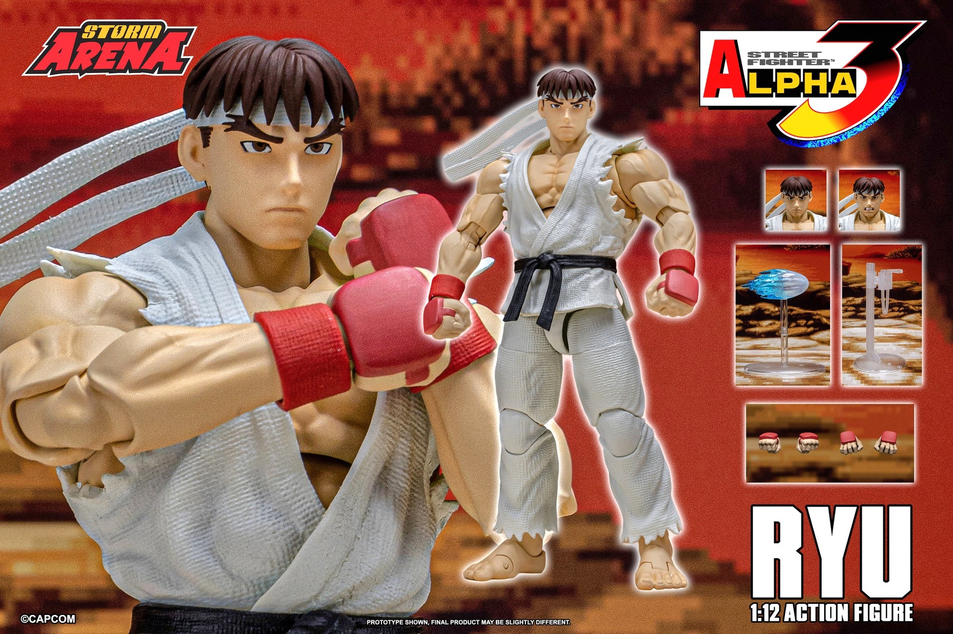 A high-quality Ryu action figure based on his Street Fighter Alpha 3 appearance released by Storm Collectibles in 2025. This highly-detailed "Storm Arena" series figure packs great detail and features excellent articulation and posing abilities!
