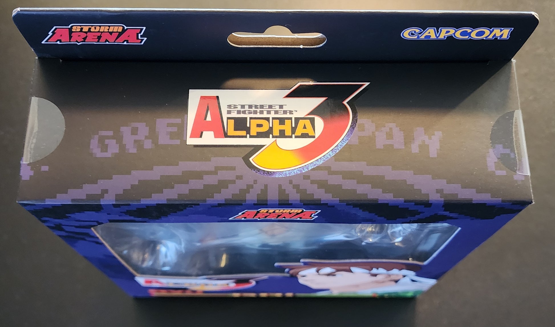 The box contains an alternate head, alternate hands, and special move effects. The outer box is decorated with the highly influential and celebrated SFA3 character artwork, logo, and HUD graphics.
