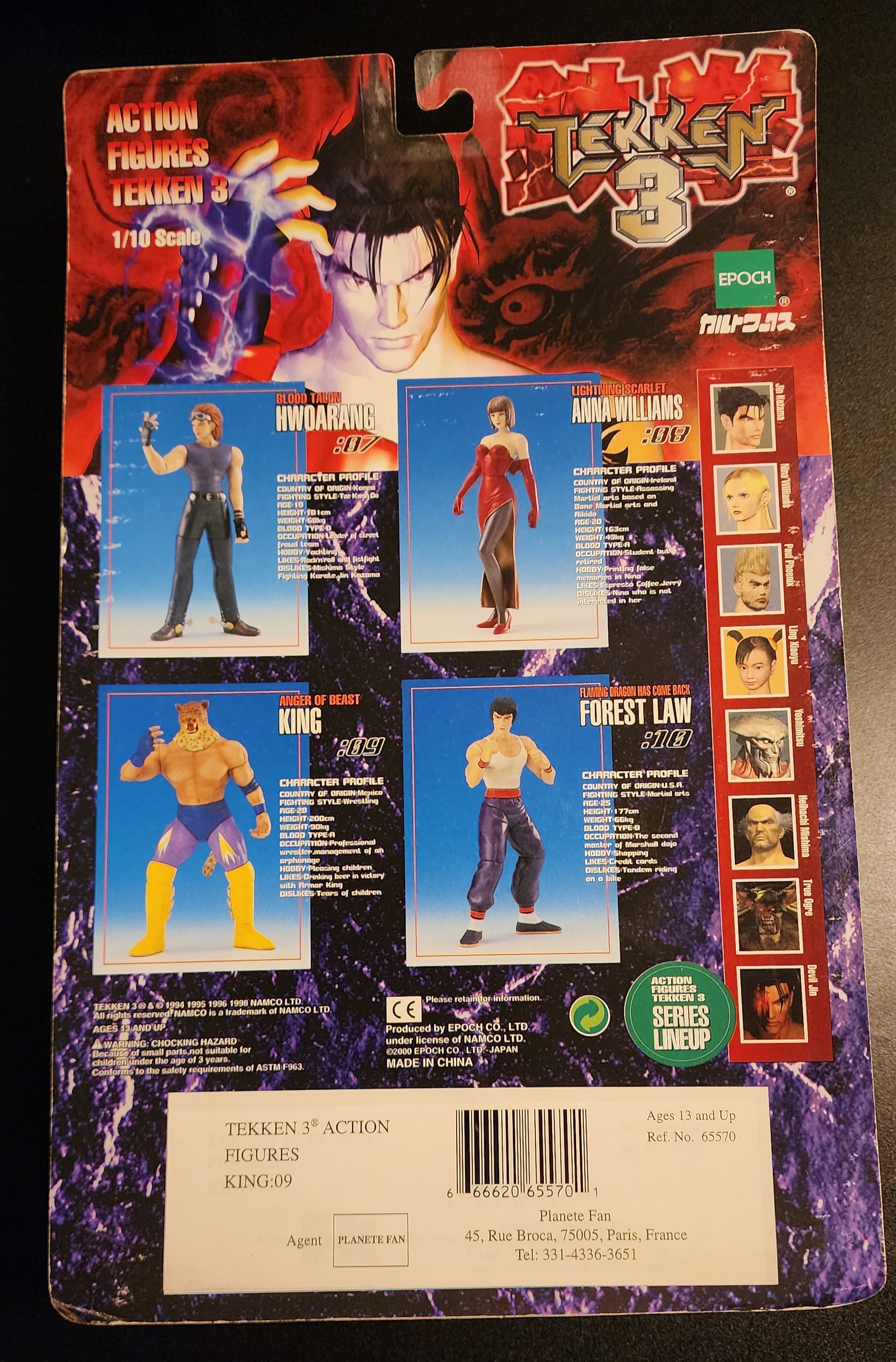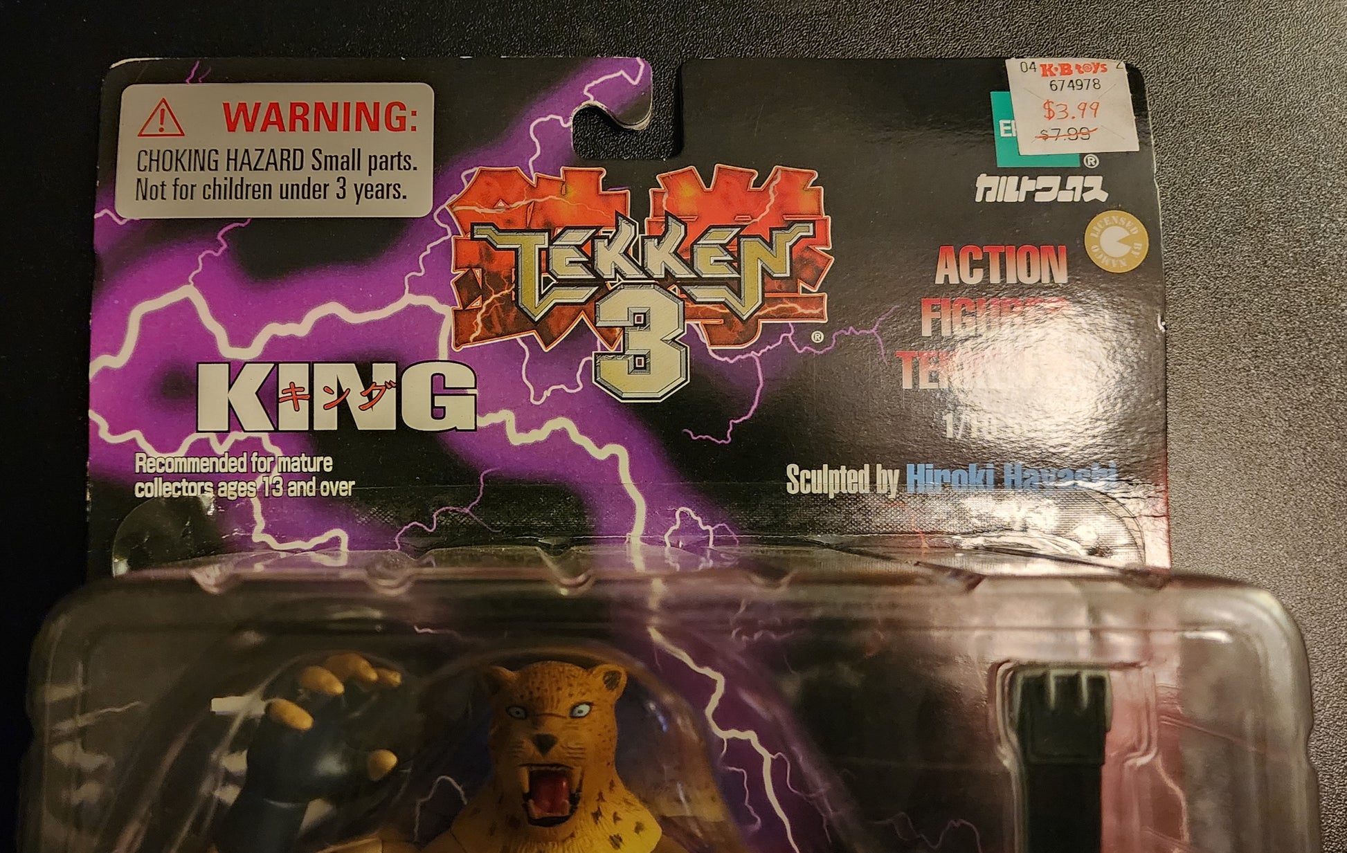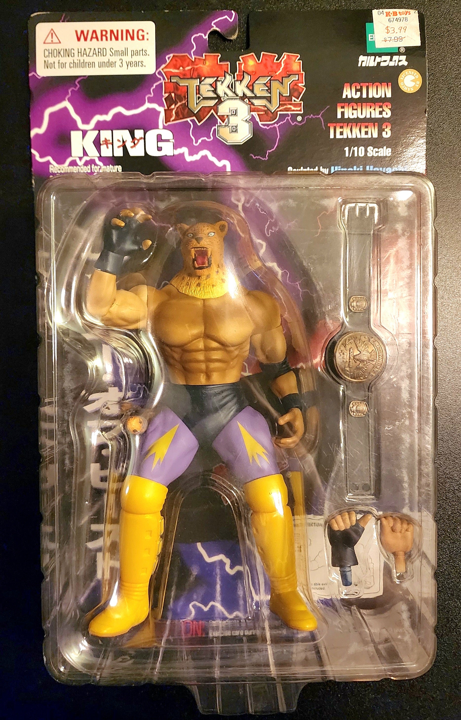 This 7" tall King figure is from Epoch's 1998-2000 line of figures based on Tekken 3. This nicely detailed figure comes packaged with championship belt, alternate hands, and base. King is one of the RAREST figures from this Epoch line!