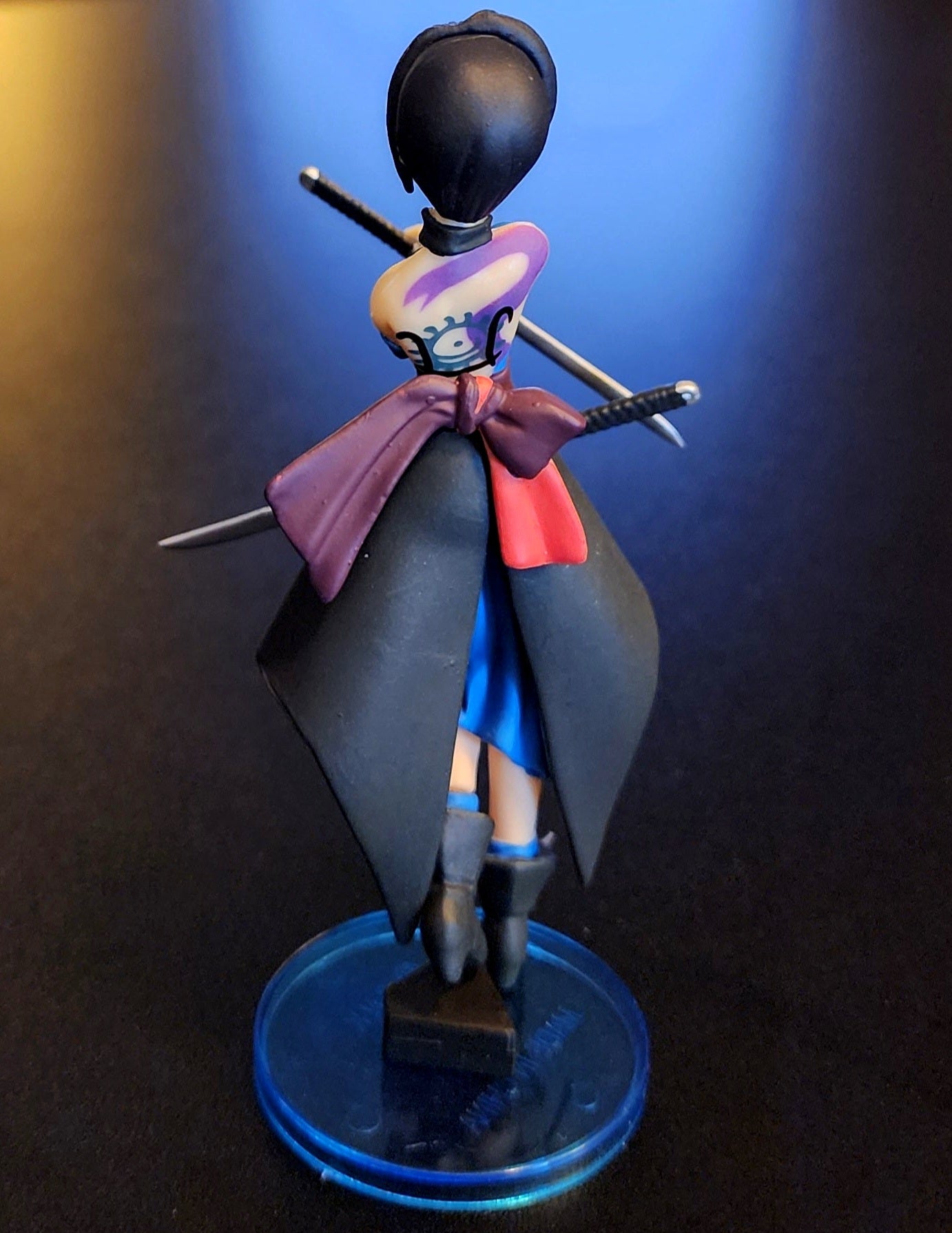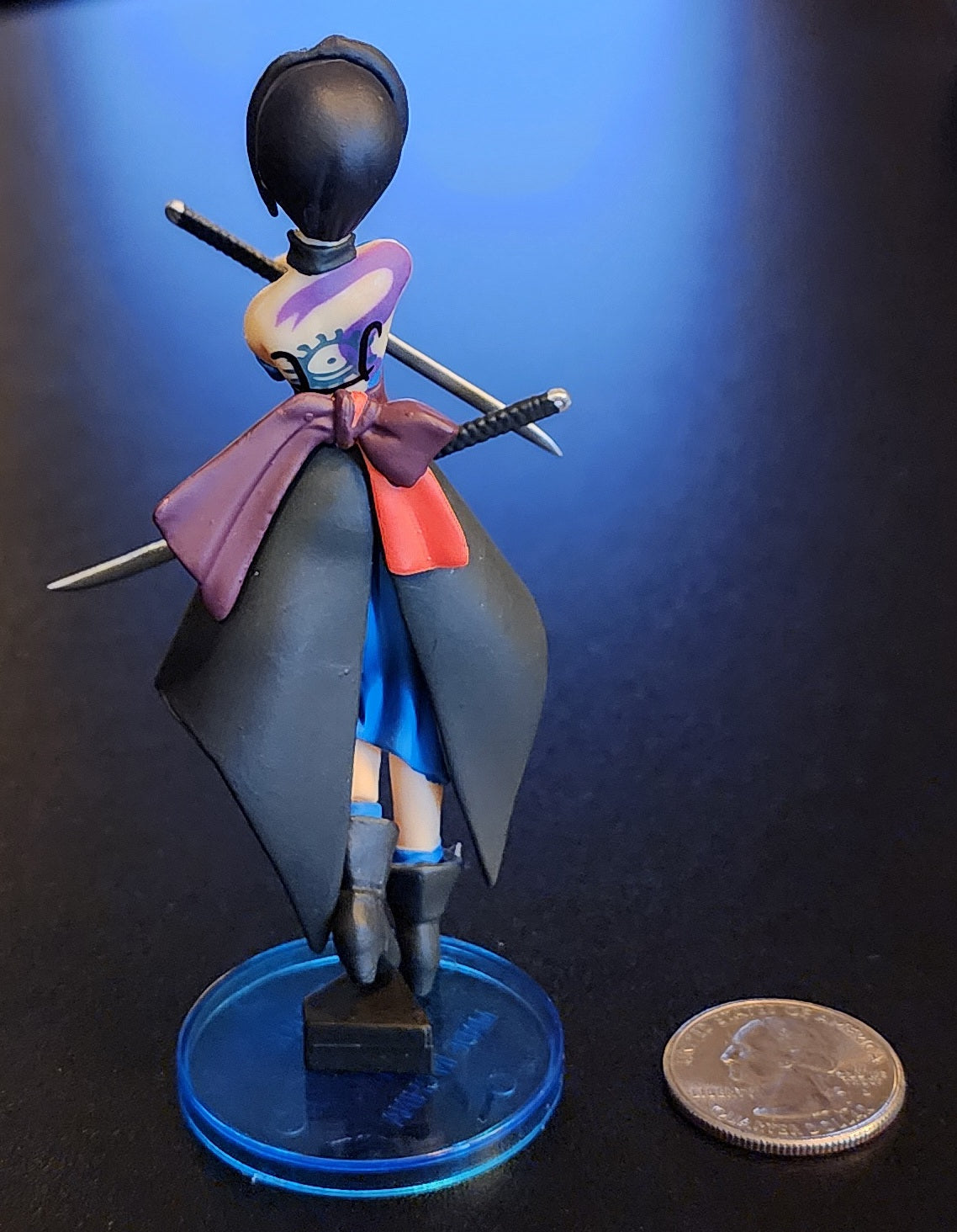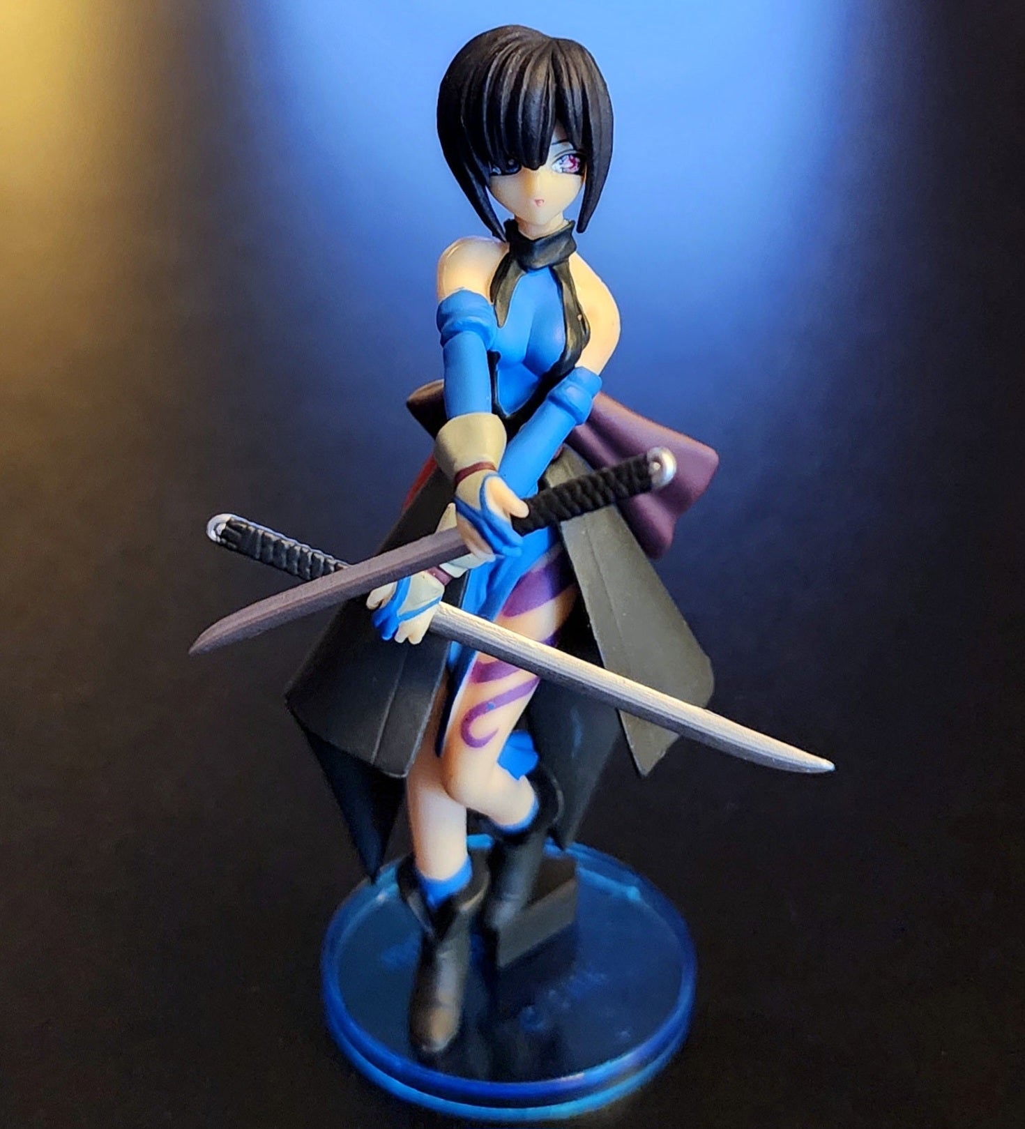 From the "SNK Real Figure Collection" by Yujin, this gashapon figure of Shiki from Samurai Shodown / Samurai Spirits stands about 4" tall. Her wrists and head can articulate somewhat to change her pose slightly and her two swords can be equipped.