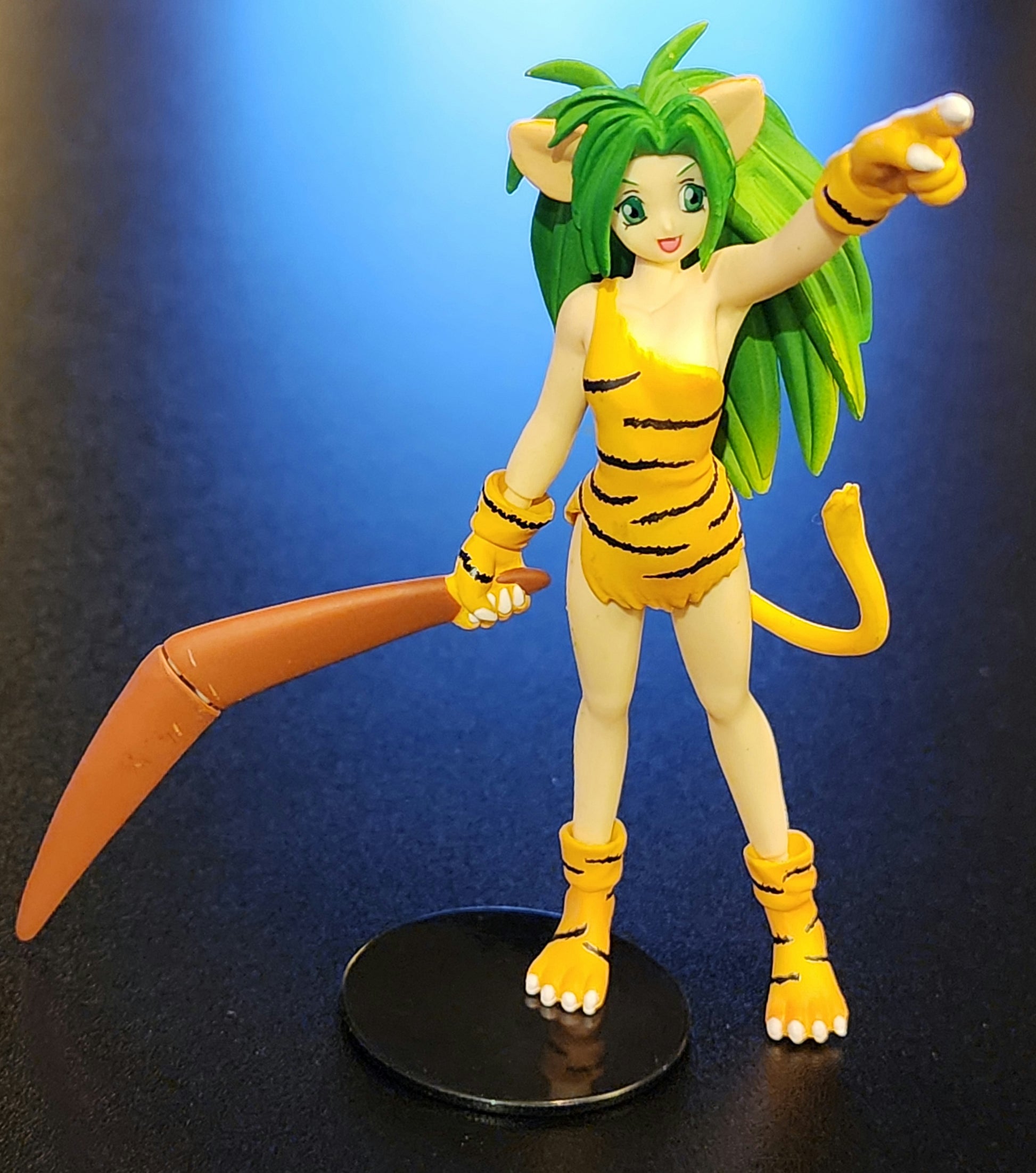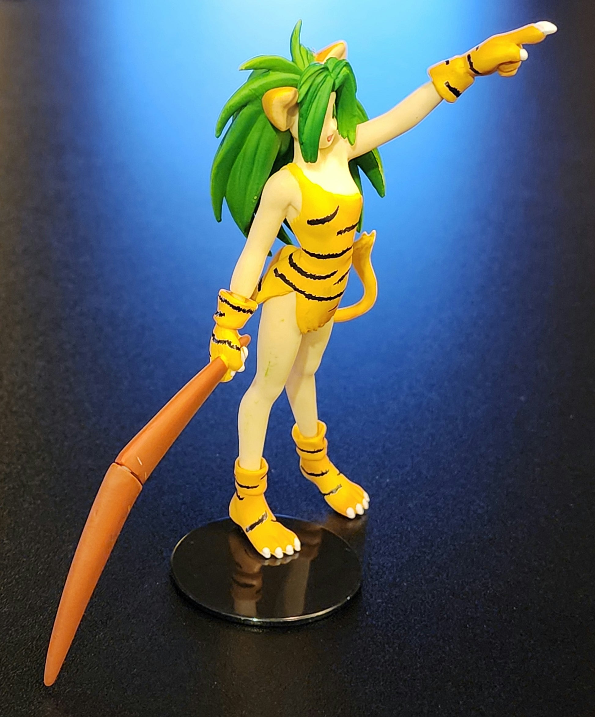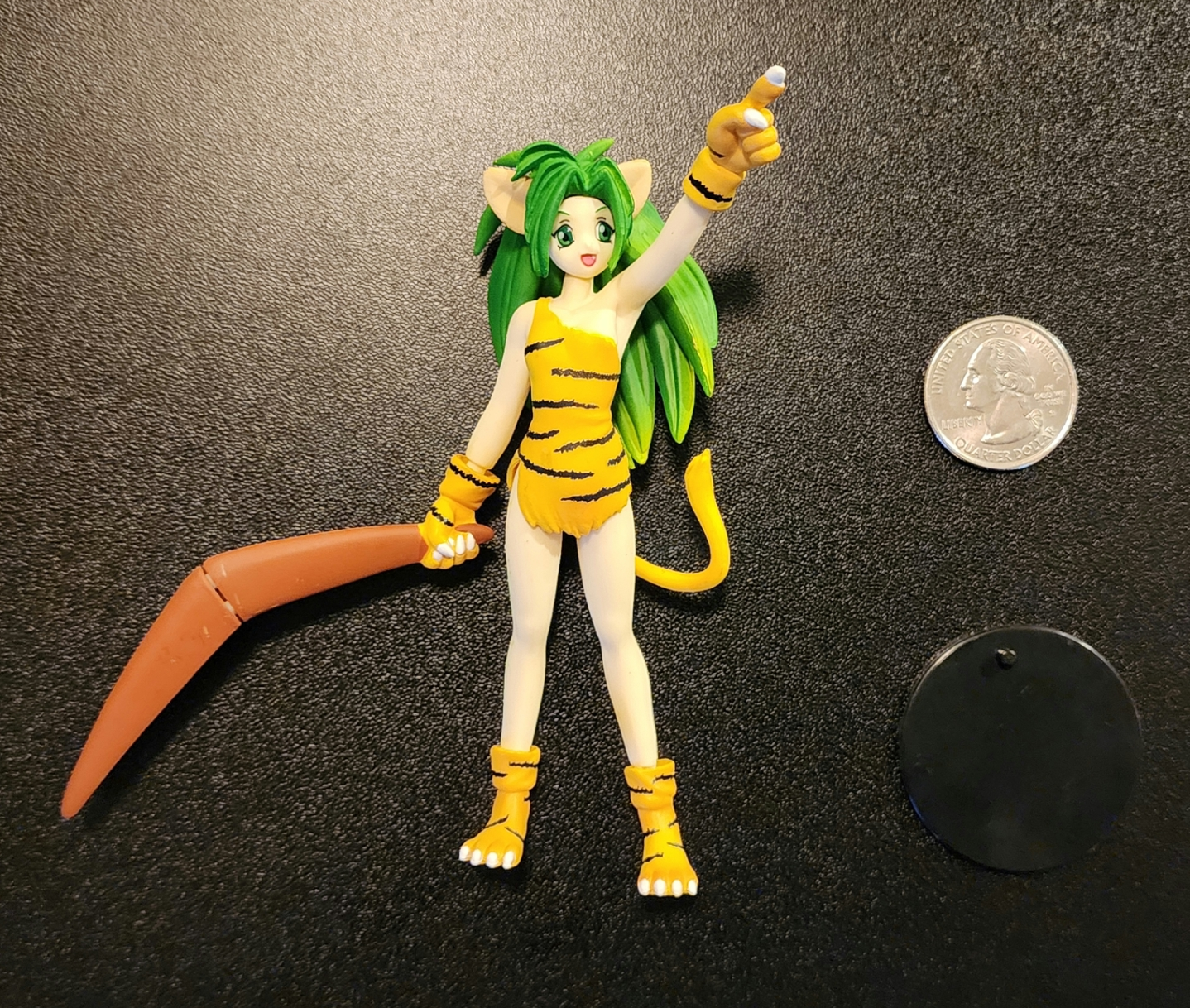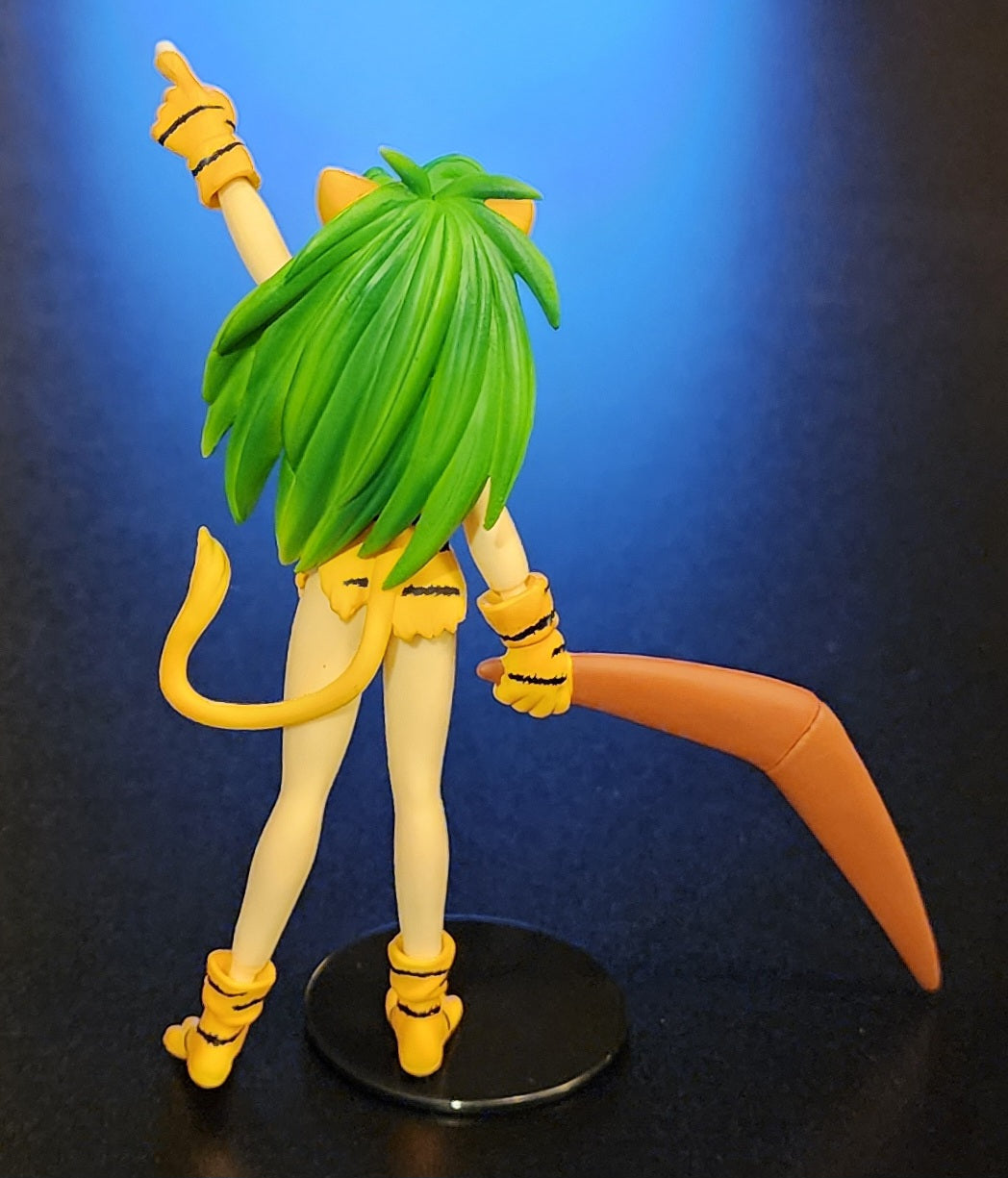 This 4" Cham Cham gashapon is from SNK's SR Figure collection featuring females from the Samurai Shodown series. The item available for purchase is the capsule version, sealed and unassembled. Package includes boomerang and circular black base that she attaches to. 🪃 This is the original 1P Color version.