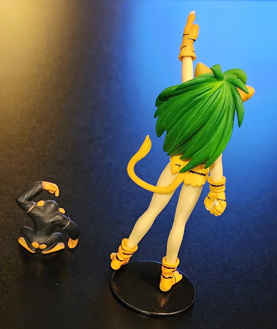 This 4" Cham Cham gashapon is from SNK's SR Figure collection featuring females from the Samurai Shodown series. This Cham Cham figuee comes with an additional Paku Paku (the monkey) figure + a circular black base that she attaches to for easy displaying. This is the original 1P Color version.