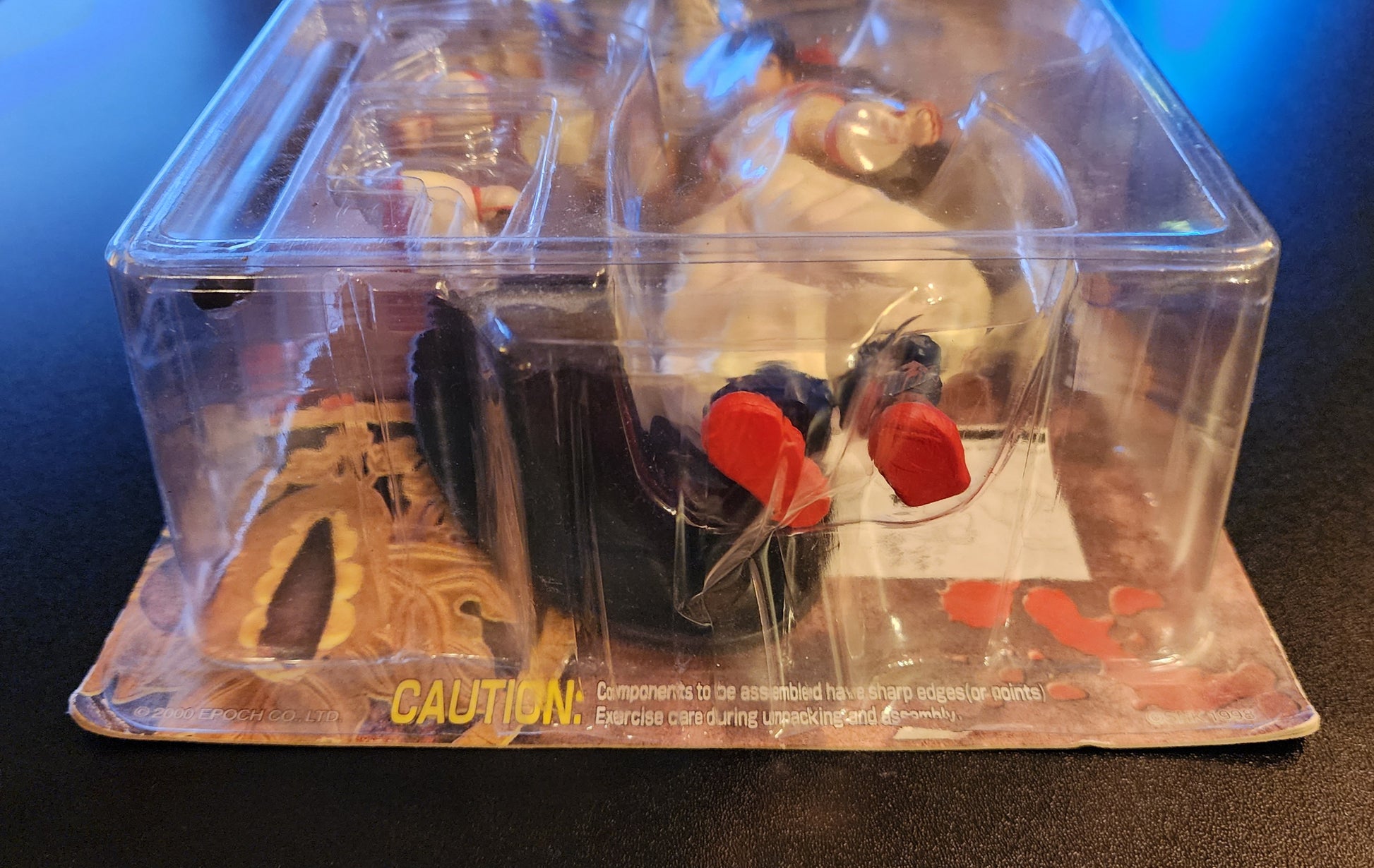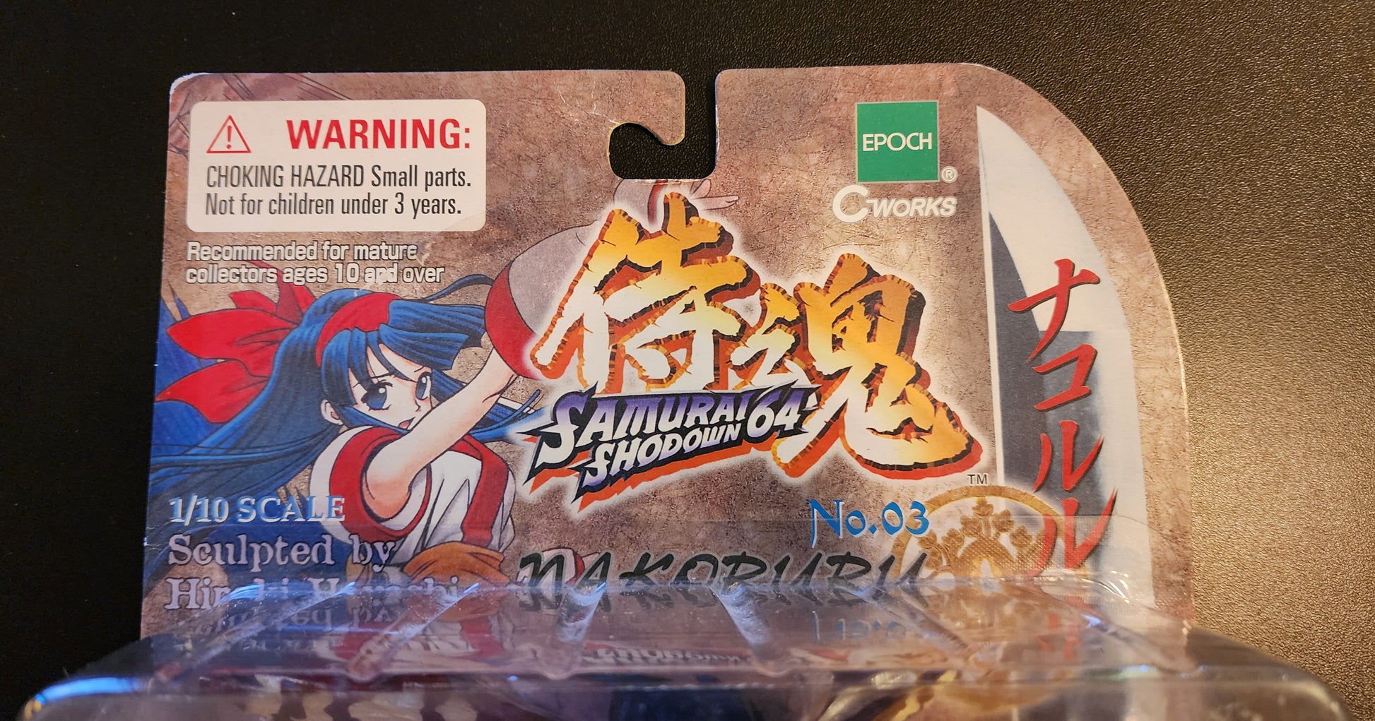 This is a RARE sealed Nakoruru figure made by Epoch based on her Samurai Shodown 64 appearance. Included in the box is Mamahaha (hawk), alternate arms (one holding her sword), and a base for Nakoruru to stand on. The box features official character art from Samurai Shodown 64. Holding her hawk, this impressive Nakoruru figure stands about 8" tall. Production year is 2005.